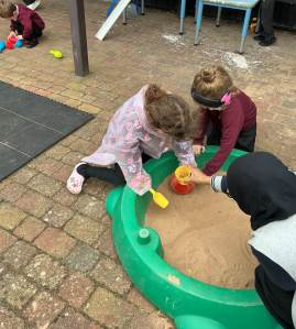Stories are brought to life exploring with props that can be touched and explored, actions that can be copied, scents to smell and sounds to listen to. Our afternoons are very busy, this is when we complete our wider curriculum topic-based activities as well as playing together, with a range of toys that are set up inside and outside of the classroom.
